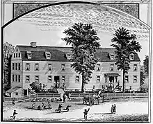 In 1853, the school and its land was sold to a private party who kept it until 1863. In 1857 the New York Yearly Meeting was eager to open a boarding school in Union Springs in central New York. On September 1 of that year a property southwest of the town of Auburn was purchased for $9,842. The first day of classes was May 11, 1858, with grades 1-12, with only four boarders and twenty day students. At this time the school was officially known as Friends Academy.[8] On March 23, 1876 the school officially changed its name to Oakwood Seminary, however the first unofficial reference to the school's name as Oakwood appears in 1863.[8]