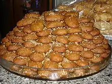 The Assyrians, the indigenous people of northwestern Iran, northern Iraq, northeastern Syria, and southeastern Turkey that belong to the Assyrian Church of the East, Ancient Church of the East, Syriac Orthodox Church, and Chaldean Catholic Church today celebrate Christmas on December 25. Assyrians colloquially call Christmas Eda Zora, meaning "little holiday." It is officially called Eda d'Yalde which means "birthday holiday." Traditionally, Assyrians fast (sawma) from December 1 until Christmas Day. In Iraq, for instance, on Christmas Eve, Assyrian families congregate outside of their house and hold lighted candles while a child reads aloud the nativity story. Then they all sing psalms over a bonfire made of thorn bushes. Folklore says that if the thorns burn to ashes, the family will have good luck. After the fire has been reduced to ashes, the family members will jump three times over the ashes and make a wish.[51] The next day, on Christmas, "as another bonfire burns in the churchyard, the bishops lead the service while carrying a figure of the baby Jesus. He blesses one person with a touch. That person touches the next person and the touch passes around until all have felt the touch of peace."[52] Many Assyrians will attend the Shaharta, or midnight vigil before Christmas. On Christmas Day, when families gather together after the Shaharta or morning mass, raza d'mowlada d'maran, the fast is broken by eating traditional Assyrian foods such as pacha/reesh-aqle (meaning "from the head to the tail"), which is a boiled soup made of sheep or cow intestines, tongue, stomach, legs, and spices or harissa, a porridge made of ground wheat and chicken (both dishes are prepared usually overnight). These two dishes are only made twice a year: on Christmas and Easter. Traditional desserts eaten after the main course include Killeche, a date and walnut-stuffed cookie, and Kadeh, another stuffed pastry. After the feast is finished, Assyrians will visit the houses of family and friends to exchange Christmas greetings, saying, "Eedokhon breekha," meaning "May your feast be blessed."[53] There, the host will serve tea, Turkish coffee, and Killeche and Kadeh to guests. Although Christmas is celebrated in a much more religious fashion, in recent years, families put up a small Christmas tree in the house.