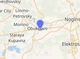 Obukhovo (Russian: Обу́хово) is an urban locality (a work settlement) in Noginsky District of Moscow Oblast, Russia, located 26 kilometers (16 mi) east from Moscow. Population: 9,630 (2010 Census);[1] 10,746 (2002 Census);[5] 11,359 (1989 Census).[6]