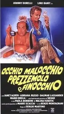 Occhio, malocchio, prezzemolo e finocchio (Italian for "Eye, evil eye, parsley and fennel", also known as Evil Eye) is a 1983 Italian comedy film directed by Sergio Martino. The film consists in two episodes spoofing superstition and magic, respectively starring Lino Banfi and Johnny Dorelli.[1][2][3][4]