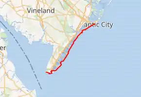 | Maintained by NJDOT, Cape May and Atlantic counties, Egg Harbor Township, Ventnor City, Atlantic City, and Cape May County Bridge Commission | |||||||||||||