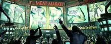 Described as "mysticism versus consumerism with a mega dose of twisted humor,"[34] the story represented beliefs deep and personal to creator Lorne Lanning—that "great art reflects back on us not necessarily what we want to see, but what we need to face."[30] For Lanning, those beliefs infused his characterisation of the planet Oddworld, with Abe's Oddysee touching on just a small aspect of the larger picture that was the entire planet. His idea was for the theme of Oddworld to be "heavily woven with the dark side of globalization, the dark side of the multi-national fallout upon the human condition" and for his games to touch on examples of those themes, in the case of Abe's Oddysee, capitalism, third-world exploitation, the environment and the fast food industry with respect to the plight of the diamond miners in South Africa and the De Beers cartel that dominate diamond trading.[15] Lanning disliked "what [capitalism] did to the little guy,"[35] and "wanted to create a meaningful dark reflection of our dysfunctional world, wrapped up in a fantasy world, where we could talk about the craziness of our capitalism, but with a funny bone approach."[36] And this anti-capitalist view infused the deeper meaning of Abe's Oddysee as the socio-economic element of the story was set amongst the lower class "slaving away in unsafe conditions, unwillingly bending to the will of corporate suits... to earn a few bucks for a day's worth of grueling, often unrewarding work"[37] The protagonist fighting back against his oppressors, the Glukkons, represented Lanning's desire for people in the real world to fight back against the "abominable behavior of the world's most greedy multi-national corporations,"[37] characterised by "caricatures of CEOs, all power-suits and cigars."[38] The Glukkons play a minor role in the gameplay of Abe's Oddysee, and are only seen in the game's cutscenes. This was intentional, as Lanning wanted the primary antagonist to be the RuptureFarms factory itself. "The corporation is above and beyond any of its executives or employees—or slaves. So by making [players] defeat RuptureFarms as the end boss... we thought it would add a bigger sense of climax."[37] This story was important to Lanning because he feels "it's the artist's role to create new myths that are relevant to the changing times of our world, [and] to bring some shining direction to our more troubling challenges."[37]