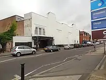 Cooper wanted to establish a film theatre to present his productions to the paying public, and acquired a public hall building on London Road that had originally been designed for a social institute in 1903 by the local architect Percival Blow (1873–1939). On 27 July 1908, Cooper opened the Alpha Picture House, Hertfordshire's first permanent cinema. The building was fitted out with a restaurant, swimming pool and hairdressing salon as well as the 800 seat cinema.[3] The cinema failed inspection following the passing of the 1910 Cinematograph Act and was sold through liquidation to George Arthur Dawson the following year. The cinema continued to run as the Poly until 1926 and was destroyed by fire the following year.[4][5]