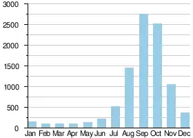 ![]() Average flow in m3/s of the Niger River at the Markala Dam[1] |
