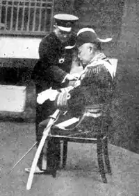 After his retirement from active duty, he served as an aide de camp to the Imperial Household Agency, supporting the promotion of Prince Fushimi Hiroyasu to the post of Chief of the Navy General Staff and Ōsumi Mineo as Navy Minister. He was also tutor to the Crown Prince (the future Emperor Hirohito) on naval issues.[7][8]