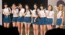Oh My Girl (Korean: 오마이걸; RR: Omaigeol, also stylized as OH MY GIRL and OMG) is a South Korean girl group formed by WM Entertainment. The group is composed of seven members: Hyojung, Mimi, YooA, Seunghee, Jiho, Yubin and Arin. Originally an eight-piece group, JinE left the group in October 2017 due to health issues. Oh My Girl debuted on April 20, 2015, with an eponymous extended play.[2][3]