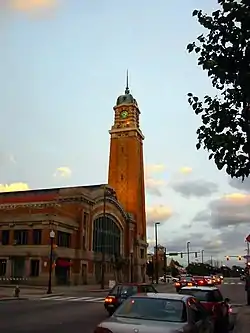 The salient feature of Ohio City's business district is the historic West Side Market, built in 1912. The European-styled market, located at the intersection of Lorain Avenue and West 25th Street, draws an estimated one million visitors annually.[6] Located north of the West Side Market is The Ohio City Fresh Food Collaborative, one of the largest contiguous urban farms in America. The operation includes a farm, retail farm stand and community kitchen on a 6-acre city parcel.[7]