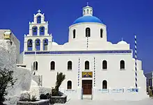 Oia or Ia (Greek: Οία, pronounced [ˈi.a][2]) is a small village and former community in the South Aegean on the islands of Thira (Santorini) and Therasia, in the Cyclades, Greece. Since the 2011 local government reform it has been part of the municipality of Santorini, of which it is a municipal unit.[3][4] It covers the whole island of Therasia and the northwesternmost part of Santorini, which it shares with the municipal unit of Santorini. The main street is named Nikolaou Nomikou. The population was 1,545 inhabitants at the 2011 census, and the land area is 19.449 km2.[1][5]