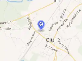 Oitti railway station (Finnish: Oitin rautatieasema) is a railway station in the village of Oitti in the municipality of Hausjärvi, Finland. The station is located along the Riihimäki–Lahti line, approximately 15 kilometres (9 mi) away from Riihimäki railway station and approximately 44 kilometres (27 mi) from Lahti railway station.