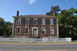 Old Hotel, also known as Williams Ordinary and Love's Tavern, is a historic inn and tavern located at Dumfries, Prince William County, Virginia. It is dated to about 1765, and is a two-story, five bay, Georgian style brick building. It features stone quoins and a stone doorway. The building has a fully molded wood cornice with modillions, hipped roof, and four interior end chimneys.[3] In the fall of 2016, new evidence emerged from dendrochronology testing by the Oxford Tree Ring Laboratory in Baltimore that the building may not be as old as previously thought. The dendrochronology testing, which examines the wood in the building, reveals the structure may date to 1786–87, just before George Washington took office. The building, one of the oldest in Prince William County, is currently used by the county for its Historic Preservation offices.[4]