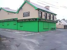Former industries in the Oldtown include the Model Bakery,[13] where the local children would gather to be fed free buns.[5] There was also the Gaeltex Factory.[14] Charlie Devlin had a mobile shop.[5] Current employers in the area include Dunnes Stores, NowDoc,[15] Jungle King[16][17] and The Hide Out Bar (Oldtown Inn), which was established in the 19th century.[18] The pub was redeveloped in 2008 and was awarded the most improved public house by the then Minister for the Environment, John Gormley. However, its new owner John G. Larkin, had ties with Dessie Larkin, the Fianna Fáil mayor and councillor (Gormley was in coalition with Fianna Fáil at this time).[19] The pub was later renamed The Snug.[20]