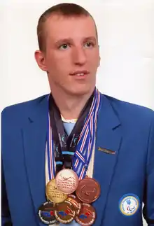 Oleksandr Komarov (Ukrainian: Олександр Комаров; born 10 June 1988)[1] is a Ukrainian Paralympic swimmer.[2] He represented Ukraine at the Summer Paralympics in 2012, 2016 and 2021 and he won two medals at the 2016 Summer Paralympics: the gold medal in the men's 4 × 100 m freestyle relay 34pts event and the bronze medal in the 100 m freestyle S6 event.[2]