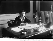 Between 1921 and 1923, Kameneva was a leading member of the Central Commission for Fighting the After-Effects of the Famine[5] and oversaw a propaganda campaign against the American Relief Administration (ARA) under Herbert Hoover in the Soviet press. Between 1923 and 1925, she was the head of the short-lived Commission for Foreign Relief (KZP), a Soviet governmental commission that regulated and then liquidated remaining Western charities in the Soviet Union.[6] From 1926 to 1928, Kameneva served as chairman of the USSR Society for Cultural Relations with Foreign Countries ("Voks", Vsesoiuznoe Obshchestvo Kul'turnoi Sviazi s Zagranitsei)[7] In that capacity she greeted many prominent Western visitors to the Soviet Union, e.g. Le Corbusier[8] and Theodore Dreiser,[9] and represented the Soviet Union at the festivities in Vienna commemorating the centennial of Ludwig van Beethoven's death in March–April 1927.[10] Throughout the 1920s, she also ran a leading literary salon in Moscow.[11]