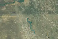 Olushandja Dam is a dam on the Etaka River outside of Oshakati in the Oshana Region of Namibia. The dam was completed in 1990.[1] Its lake has a maximum capacity of 42.331 million cubic metres, and stores water from the Calueque Dam on the Cunene River in nearby Angola which supports the Ruacana Power Station downstream.[2]