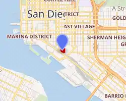 Built in 2004 at a cost of $124 million, the 32-story, 511-room Omni San Diego is located across the street from the San Diego Convention Center and connected via sky bridge to Petco Park.[1] The tower was developed by JMI Realty and designed by architectural firm Hornberger and Worstell. Other key contributors include general contractor Swinerton and Architectural Glass and Aluminum as the glazing contractor.[2] The hotel has over 20,000 square feet (1,900 m2) of meeting space in addition to a 9,750-square-foot (906 m2) ballroom.[3] There is also a sixth-floor outdoor terrace with a heated pool and jacuzzi, a McCormick & Schmick's seafood restaurant, and a full-service business center.