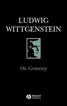 On Certainty (German: Über Gewissheit, original spelling Über Gewißheit) is a philosophical book composed from notes written by Ludwig Wittgenstein over four separate periods in the eighteen months before his death on 29 April 1951. He left his initial notes at the home of Elizabeth Anscombe, who linked them by theme with later passages in Wittgenstein's personal notebooks and (with G. H. von Wright), compiled them into a German/English parallel text book published in 1969. The translators were Denis Paul and Anscombe herself. (The editors also numbered and grouped the 676 passages; citations to the work are standardly given as OC1..OC676 rather than by page number.)