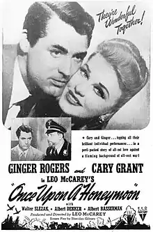 Once Upon a Honeymoon is a 1942 romantic comedy/drama starring Cary Grant, Ginger Rogers, and Walter Slezak, directed by Leo McCarey, and released by RKO Radio Pictures. It was nominated for the Oscar for Best Sound Recording (Stephen Dunn).[2]