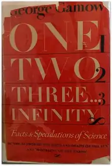 One Two Three... Infinity: Facts and Speculations of Science is a popular science book by theoretical physicist George Gamow, first published in 1947, but still (as of 2020) available in print and electronic formats. The book explores a wide range of fundamental concepts in mathematics and science, written at a level understandable by middle school students up through "intelligent layman" adults.[1] The book includes many handmade illustrations by Gamow.