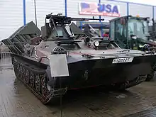 The Opal-I is a multi-purpose fully amphibious armoured personnel carrier developed and produced by HSW S.A. in Poland. APC is a development of MT-LB that was produced in HSW under licence. Major changes are reworked nose section and fitted propellers for better floating speed and manoeuvrability, new turret with 12.7 mm NSVT machine-gun instead of old one with 7.62 PKT and powered-up engine. Opal-II is a stretched variant with longer chassis with 7 road wheels on each side, like the 2S1 and MT-LBu and 300 hp (220 kW) SW680T engine.