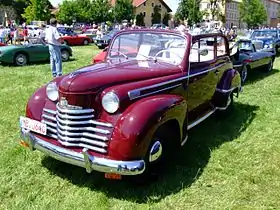 At 2500 Reichsmark it offered a true four-seater with 1.3-litre, four-cylinder, side-valve, 24 PS (18 kW) engine capable of 100 km/h (62 mph). Drive was to the rear wheels through a three-speed gearbox but a four-speed unit became available in 1937. The car had independent front suspension with a live axle at the rear and semi-elliptic leaf springs. This car was also assembled in Tanjung Priok, near Jakarta, in the then-Netherlands East Indies. Assembly there began in 1938 and the car was marketed as the "Opel 1.3".[5]