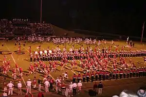 The Opelika High School Marching Band, also known as “The Spirit of the South” meets and practices during the summer and through the fall semester. With rehearsals after school, this ensemble regularly practices and works towards achieving a high level of musicianship and marching technique. This group performs at every football game and competes at marching competitions throughout the year. The marching band averages 200 students per year and consists of the 8th–12th grade students who play wind or percussion instruments along with a visual ensemble made up of majorettes, color guard, and the “Showstoppers” kickline. The “Spirit of the South” has traveled to many different destinations throughout the southeast and the nation. Some of the more recent trips and achievements have been multiple trips to Orlando, Philadelphia, and Chicago in 2011 to participate in the St. Patrick's Day Parade. The “Spirit of the South” has twice performed in the Macy's Thanksgiving Day Parade, in 1989 and 1994.