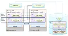 OpenSAF defines a set of building blocks, collectively providing a mechanism to manage Service Availability (SA) of applications based on resource-capability models.[20] SA and High Availability (HA) is the probability of a service being available at a random point in time; mission-critical systems require at least 99.999% (five nines) availability. HA and SA are essentially the same, but SA goes further (i.e. in-service upgrades of hardware and software).[21] OpenSAF is designed for loosely coupled systems with fast interconnections between nodes (i.e. using TIPC/TCP),[22] and extensible to meet different workloads; components communicate between themselves using any protocol. This extensibility is provided in large part by the IMM API, used by internal components and core services. The platform can exert control over compute and storage resources by defining as Objects, to be managed as (component service) instances and/or node constraints.[2][20][23]