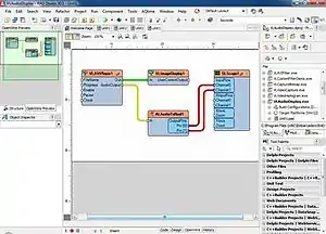 OpenWire is an open-source dataflow programming library that extends the functionality of Embarcadero Delphi and C++ Builder by providing pin type component properties. The properties can be connected to each other. The connections can be used to deliver data or state information between the pins, simulating the functionality of LabVIEW, Agilent VEE and Simulink. OpenWire is available for Visual Component Library (VCL) and FireMonkey (FMX).[2]