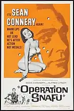The film was not released in the United States until 21 May 1965, retitled "Operation Snafu"[1] and later "Operation War Head"[1] by the US distributor American International Pictures. The only purpose of the US release was to capitalise on the popularity of Sean Connery, who by then had become world-famous as James Bond in Dr No, From Russia with Love and Goldfinger. The titles, as well as the advertising campaign, downplayed the comedic aspects of the film as well as Connery's original second-billing. During a 1961 trip to England Alan King made a brief appearance in the film and forgot about it until the American release gave him second billing.[2] He and Connery would work together again on The Anderson Tapes.