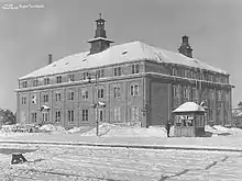 After the war, the hotel was renovated, including all-new interior and furniture for the restaurant and saloons.[8] In 1952, a ski lift, largely owned by Spisevognselskapet, opened.[7] In 1957, Architect Hugi Kohmann presented a model for three additions, two large two-story buildings and one eight-story. Although supported by the hotel management, the board of Spisevognselskapet were split, and in the end only one of the two-story extensions were built and completed in 1962.[2] In 1973, Norsk Spisevognselskap sold the hotel.[10] Another extension was launched in 1979,[2] and completed in 1989.[7] Ownership later passed to Johan Fr. Schønheyder.[10]