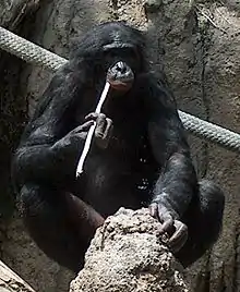 A bonobo "fishing" for termites, an example of incomplete/"untrue" opposition[5]