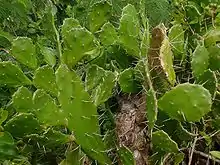 Opuntia monacantha, commonly known as drooping prickly pear, cochineal prickly pear, or Barbary fig, is a species of plant in the family Cactaceae native to South America.