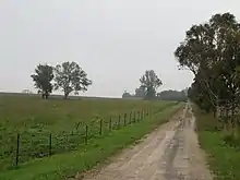 The other driveway runs south–north off former Cobbitty Road (now Oran Park Drive) to the homestead. This was lined in part in the mid-late 20th century with a mixture of eucalypt species.[2] Existing eucalypts (mature in 1947) west of this western, newer driveway.[1]