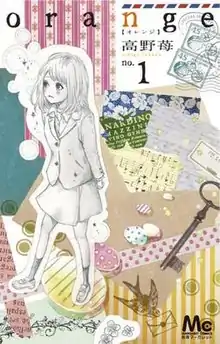 Orange (stylized as orange) is a Japanese romance manga series written and illustrated by Ichigo Takano, aimed at the shōjo and seinen demographics.[2][3] It was first serialized in 2012 in Bessatsu Margaret manga magazine and later in Monthly Action.[3] It has been compiled into 7 volumes as of April, 2022. Its chapters are published online in English by Crunchyroll and in print by Seven Seas Entertainment.[3] It is also published in France by Akata,[2] in Poland by Waneko,[4] and in Spain by Ediciones Tomodomo.[5] A live action film adaptation of the same name was released on December 12, 2015.[6] An anime television adaptation started to air in July 2016.[7] A spin-off to the manga began serialization on March 25, 2016, in the Monthly Action magazine published by Futabasha.[8] An anime theatrical film, titled Orange: Future, premiered in Japan on November 18, 2016.