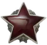 The Order of the Partisan Star's badge is made of silver, which is gilded in the case of 1st class. The badge of the order of the 1st class has the shape of a red enamelled five-pointed star placed on a golden laurel wreath. The star is gold lined. In the case of 2nd class, the order is with a wreath and silver edging. In the 3rd clas, the star is not placed on a wreath but lies on crossed rifles. Rifles and edging are silver in this case.[5]