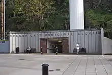 The Oregon City Municipal Elevator is a 130-foot (40 m)[2] elevator which connects two neighborhoods in Oregon City in the U.S. state of Oregon. It is the only outdoor municipal elevator in the U.S.[3] and one of at least 8 in the world.[2] The upper portion contains an observation deck which accounts for its flying saucer appearance.