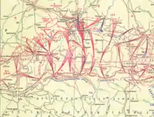 The 13th Army's main forces (the 9th, 55th, and Consolidated Rifle Divisions) were to advance along the Orel-Kursk railroad and destroy the Volunteer Army's Kornilov Division in conjunction with the shock group, while its left flank units (the 3rd and 42nd Rifle Divisions and the 13th Cavalry Brigade) were tasked with attacking the Consolidated Division at Livny. The right flank units (the 46th Rifle Division and a brigade of the 41st Rifle Division) of Ieronim Uborevich's 14th Army, the front's right wing, were to capture Khutor Mikhailovsky, while the army's main forces (the 7th, 41st, and 57th Rifle Divisions, and the 11th and 14th Cavalry Brigades) were to defeat the Drozdovsky Division, then advance on Dmitriyev on the right of the shock group.[2][3]