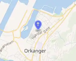 Orkanger Church (Norwegian: Orkanger kirke) is a parish church of the Church of Norway in Orkland municipality in Trøndelag county, Norway. It is located in the town of Orkanger, near the shore of the Trondheimsfjorden. It is the church for the Orkanger parish which is part of the Orkdal prosti (deanery) in the Diocese of Nidaros. The white, wooden church (originally called Orkedalsørens kirke) was built in a long church style in 1892 by the architect Christian Thams. The church seats about 200 people.[1][2]