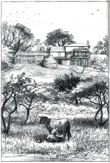 Orley Farm was written between July 1860 and June 1861.[3] The novel was first published in monthly shilling parts by the London publisher Chapman and Hall from March 1861 to October 1862, with forty wood-engraving illustrations by John Everett Millais. Each part comprised two illustrations that were situated at the front, and two to three chapters that followed. The first volume, also published by Chapman and Hall, appeared in December 1861, before the novel's serialisation was completed.[3] The second volume was published in September 1862, and both volumes included the illustrations.