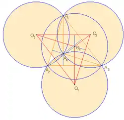 Any two polar circles of two triangles in an orthocentric system are orthogonal.[2]: p. 177