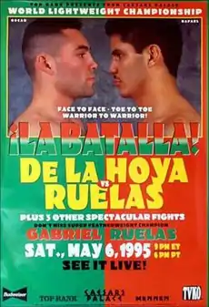 Oscar De La Hoya vs. Rafael Ruelas, billed as "La Batalla", was a professional boxing match contested on May 6, 1995 for the WBO and IBF lightweight championships. The fight is notable for being the first pay-per-view headlined by De La Hoya, who would eventually go on to become the second biggest draw in boxing pay-per-view history.