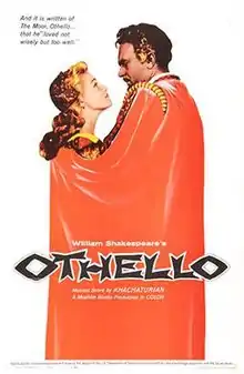 Othello (Russian: Отелло) is a 1955 Soviet drama film directed by Sergei Yutkevich,[1][2] based on the play Othello by William Shakespeare. It was entered into the 1956 Cannes Film Festival, where Yutkevich received the Best Director Award.[3]
