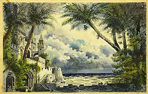 By late August 1881, it appears that the text of the finale of act 3, over which there had been some considerable discussion (with ideas exchanged between both men) was sent to Verdi, who responded in a long letter from Milan regarding his feelings about its overall structure, the role of the chorus, and other issues.[17] Throughout 1882 and 1883 very little happened, although during the winter of 1883 Verdi and Boito met in Genoa where the Verdis spent their winters, but it prompted Ricordi for three Christmases in a row to send a cake to Verdi with the figure of the Moor—in chocolate—on the top.[18] In order to keep information about the composition within the group, this gesture may have been the cause for the name given to the project for many years, "chocolate", as in Boito's letter of 1864 noting that "the manufacture of chocolate was going ahead".[19]