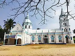 The Jesuit missionaries preached in Kaveripatinam, Agaram-Barur, Maruderi, Uthankarai-Kanampatti, Maliampatti, Nellimarathupatti, Krishnagiri-Vennampalli, Mottur, and Anganamalai, which led to many people converting to the Catholics. After the decline of Tipu Sultan in this region, Paris missionaries invited Catholics to settle from the above-mentioned village to Elathagiri. In 1782, Micheal Nayagam from Melvidhi-Maliampatti, which is near Uthankarai, was the first family to settle in this village according to Rev. Fr. Debian's record.[2] In 1784, Thottam Chinnappan family from Nellimarathupatti settled in this village, according to the book Saruthira Surukkam,[3] written by Salem diocesan priests. Before 1827, settlements were made from Ennampalli, Mottur, Kollapatti (near Vennampalli), Kaanampatti, and Maliampatti. In the book Saruthira Surukkam, many migrations are mentioned between 1780 and 1830. In 1859, Kovilur, Thirupattur became a parish after separation from Kovilur, Dharmapuri Parish. After that, Chapels in Elathagiri, Krishnagiri, and Krishnakuppam became sub-stations of Kovilur, Thirupattur Parish.