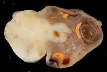 - Minor adjustment for mature cystic teratomas (0.17 to 2% risk of ovarian cancer): Mandal, Shramana; Badhe, Bhawana A. (2012). "Malignant Transformation in a Mature Teratoma with Metastatic Deposits in the Omentum: A Case Report". Case Reports in Pathology. 2012: 1–3. doi:10.1155/2012/568062. ISSN 2090-6781. PMC 3469088. PMID 23082264. - Parwate, Nikhil Sadanand; Patel, Shilpa M.; Arora, Ruchi; Gupta, Monisha (2015). "Ovarian Fibroma: A Clinico-pathological Study of 23 Cases with Review of Literature". The Journal of Obstetrics and Gynecology of India. 66 (6): 460–465. doi:10.1007/s13224-015-0717-6. ISSN 0971-9202. PMC 5080219. PMID 27821988.