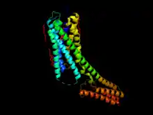 P2Y receptors are a family of purinergic G protein-coupled receptors, stimulated by nucleotides such as adenosine triphosphate, adenosine diphosphate, uridine triphosphate, uridine diphosphate and UDP-glucose.[1] To date, 8 P2Y receptors have been cloned in humans: P2Y1, P2Y2, P2Y4, P2Y6, P2Y11, P2Y12, P2Y13 and P2Y14.[2]