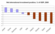 The term originated in the 1990s with the increased integration of the EU economies, and it was often used in reference to the growing debt and economic vulnerability of the Southern European EU countries.[1][3] It was again popularised during the European sovereign-debt crisis of the late 2000s and expanded in use during this period. In the 1990s to late 2000s, Ireland was not included in this term; the country was still in the midst of its "Celtic Tiger" period, with debt significantly below the Eurozone average and a government surplus as late as 2006. However, taking on the guarantee of banks' debt, the Irish government budget deficit rose to 32% of GDP in 2010, which was the world's largest.[9] Ireland then became associated with the term, replacing Italy or changing the acronym to PIIGS,[1][4][5][10] with Italy also indicated as the second "I".[11]