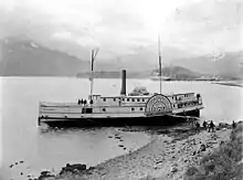 After her trial run on the lower Willamette and Columbia rivers, she was sold to a consortium of John T. Bradford, some Canadian stockholders and three brothers, Tom, John T. and George S. Wright, who were early steamboat operators in the Pacific Northwest.[2] Under Capt. J.G. Hustler,[5] she was brought around to Victoria, arriving in March 1859.[2] Because of the Fraser River Gold Rush, there was a shortage of steamboats in British Columbia in 1858–1859. This had a number of effects on the Canadian west coast, perhaps the most important of which was the establishment of British Columbia as a separate colony from Vancouver Island. For the American steamboats, they benefitted by decision of Canadian governor James Douglas to grant "sufferances" to them to allow them to work on the Victoria to Fraser River route at a levy of $12 per run.[6]
