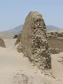 Pañamarca[1][2] (possibly from Quechua paña, "right hand, on the right", marka "village"[3][4]) is an archaeological site in the Ancash Region in Peru.[5] It is situated in the Santa Province, Nepeña District, on the right bank of the Nepeña River. An aspect of this archaeological site that is not well known is that this site is home to many artifacts that link back to the Incan Empire.[1] This site is also linked with the Moche culture[1] and together, this site was occupied by two civilizations, the Inca and the Moche, which is significant because the archaeology that is present at the site shows that the site was important in the eyes of multiple cultures.