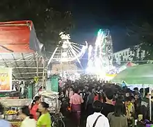Pagoda festivals (Burmese: ဘုရားပွဲ; paya pwe) are regular festivals found throughout Burma (Myanmar) that commemorate major events in pagoda's history, including the founding of a pagoda and the crowning of the pagoda's hti (umbrella).[1] Pagoda festivals are dictated by the Burmese religious calendar and often are held several days at a time. Major events in a pagoda festival typically do not coincide with Uposatha (Buddhist Sabbath) days, during which devout Buddhists observe the Eight Precepts.[1] The majority of pagoda festivals are held during the dry season, from the months of Tazaungmon (November) to Tabaung (March).[2] During the full moon day of Tabaung (Magha Puja), Buddhist devotees in various parts of Myanmar also celebrate sand pagoda festivals.
