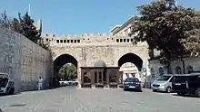 The Paired Fortress Gates or Gosha Gala Gapysy (also sometimes called Shamakhi gates and The gates of Shah Abbas) are one of the main entrances to the Icherisheher section of Baku, Azerbaijan. Until the end of the 19th century, the Shamakhi Gates had been the only entry to the fortress. [1]